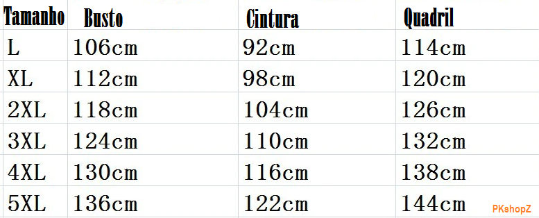 Tabela para você entender os Tamanhos: