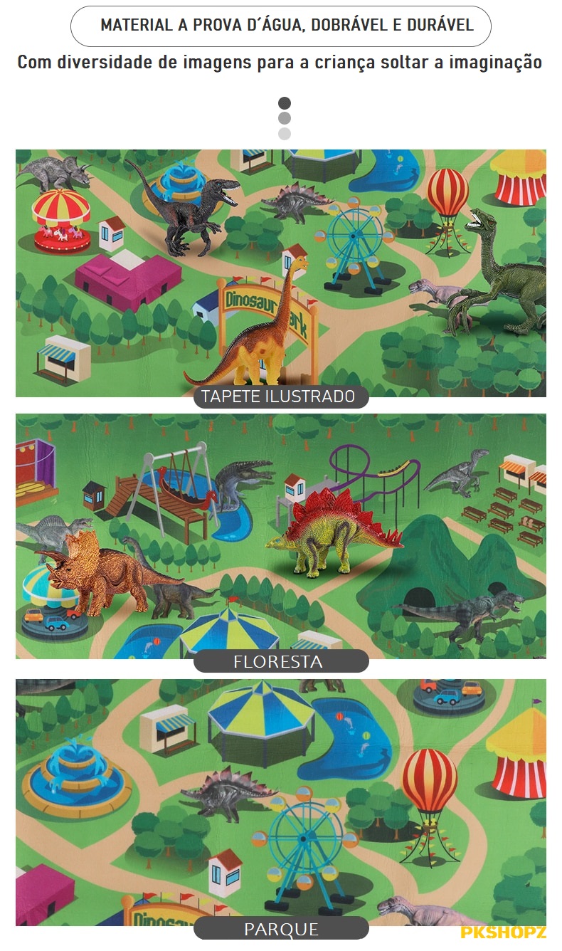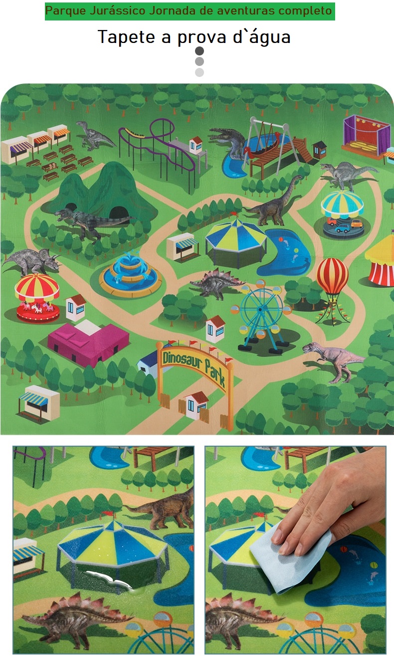 Nosso tapete é feito de textura de tecido não tecido macio em vez de PVC fino. Este tapete mostra-nos um parque de dinossauros de desenho animado interessante com cores brilhantes. É grande o suficiente para 2 a 4 jogadores passarem bons momentos juntos. Dimensão da esteira de atividades: 31,5x 27,6.