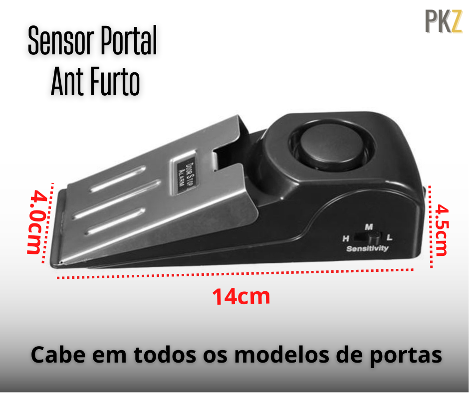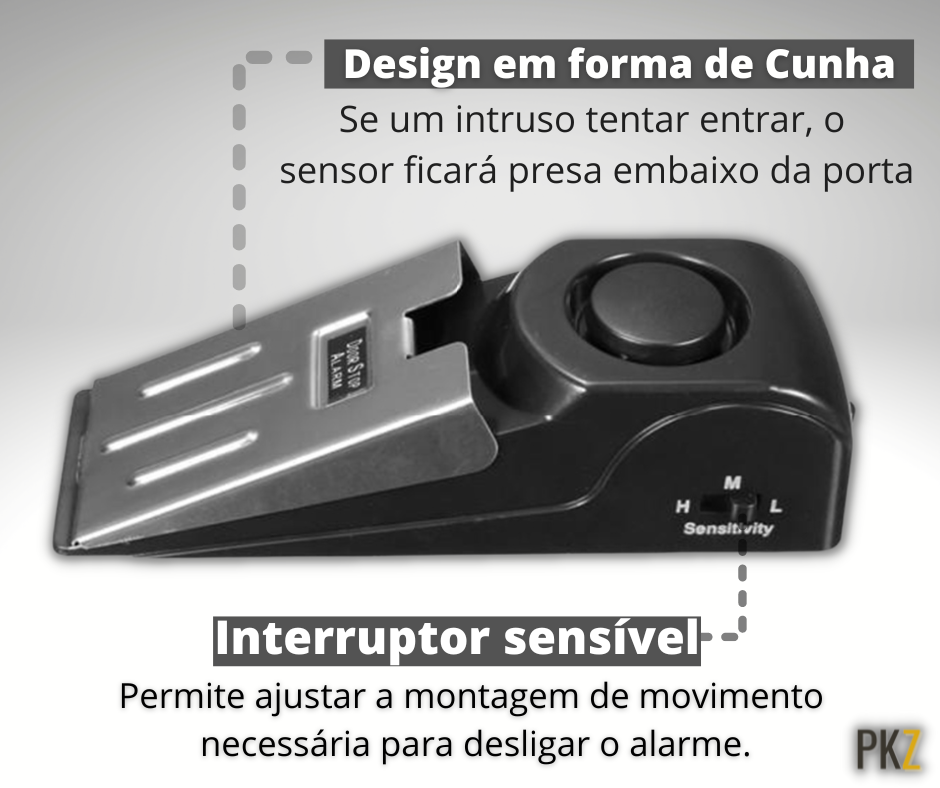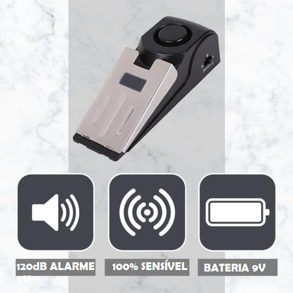 DUPLA FUNÇÃO: Funciona como cunha para evitar a abertura da porta e como alarme de porta ao mesmo tempo.
